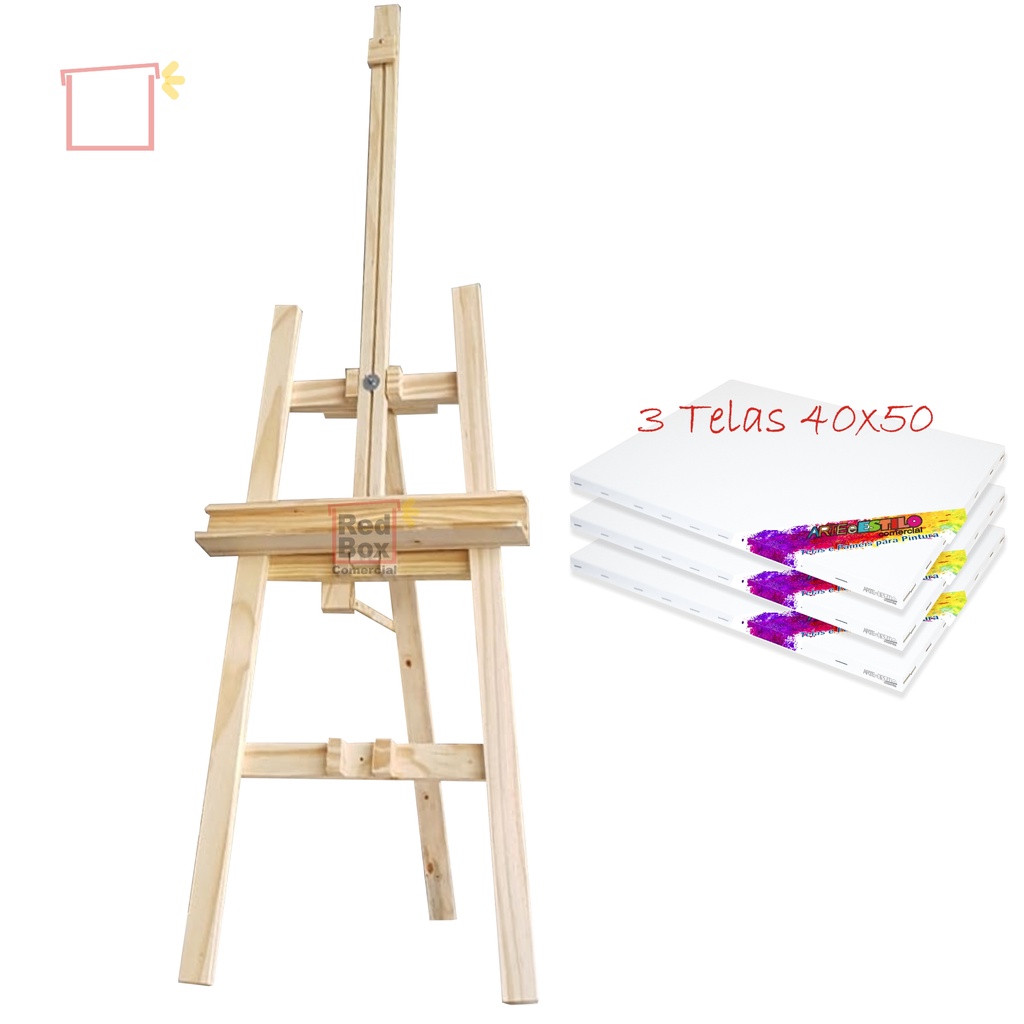 Comprar na ShopeeKit Cavalete De Chão Retratil + 03 Telas De Pintura 40x50 Cm