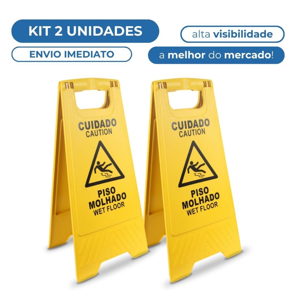 Comprar na ShopeeKit 2 Unidades Placa de Sinalização Cuidado Piso Molhado