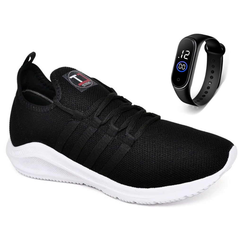 Tênis Academia Esportivo Corrida Caminhada Treino Conforto Leve + Relógio Envio Imediato