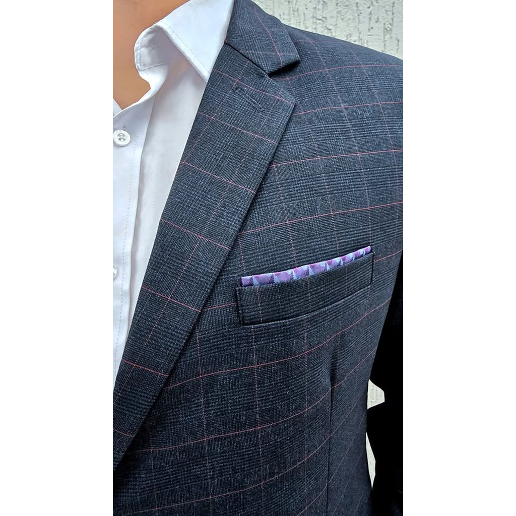 Terno Azul Marinho Xadrez Alfaiataria Príncipe De Gales Paletó+Calça