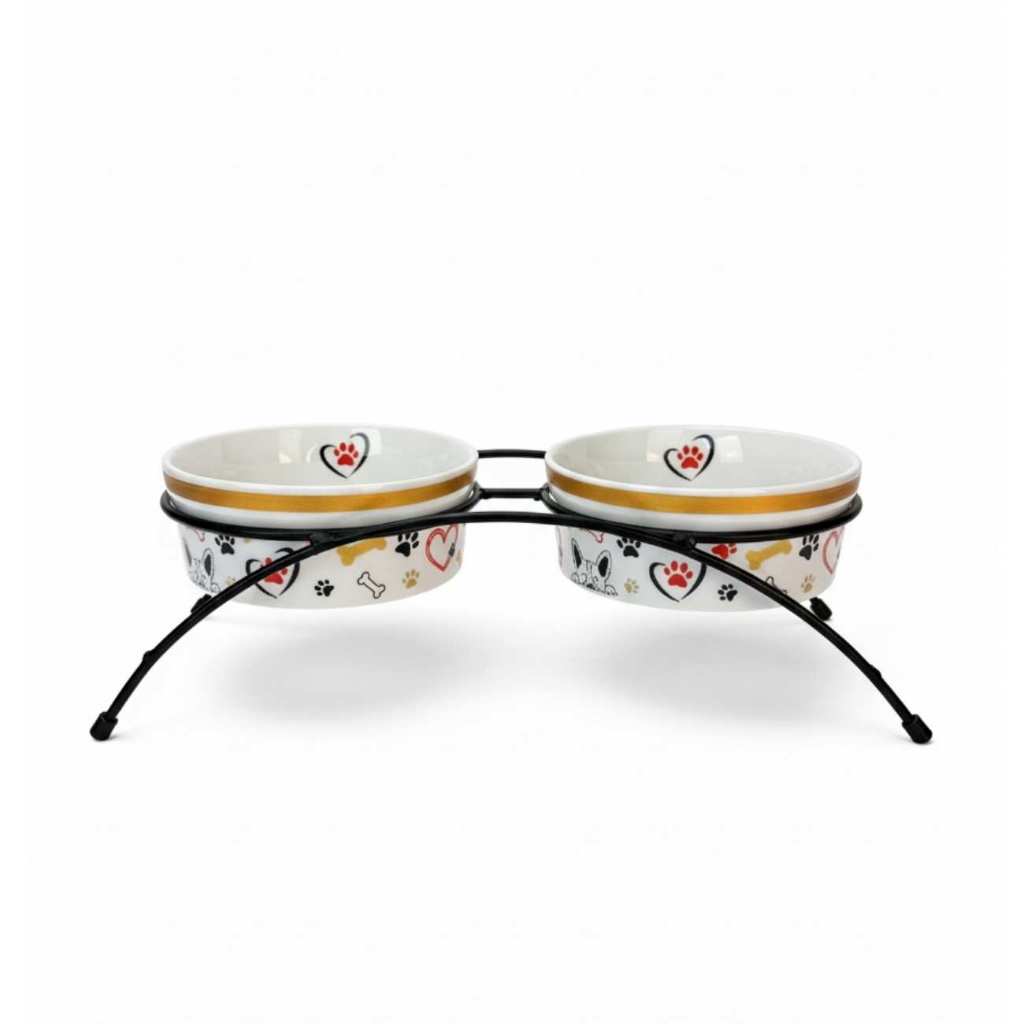 Comedouro Anti Formiga Porcelana Duplo Elevado Ergonomico 300ml Para Caes e Gatos