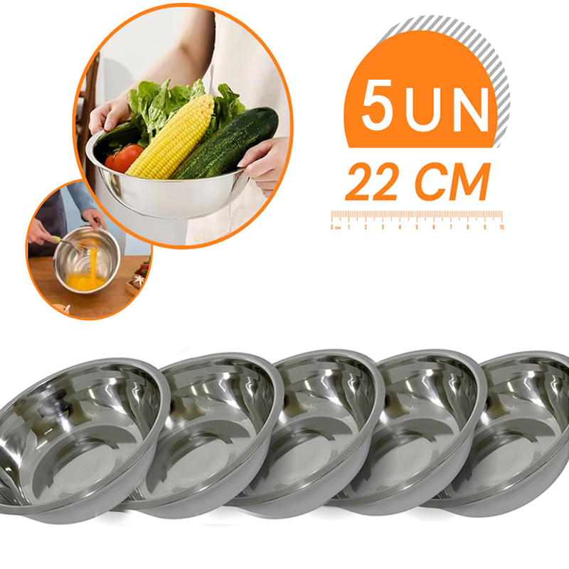 Comprar na ShopeeKit 5 Inox Tigela Saladeira Multiuso Bowl Profissional Fundo Cozinha Gourmet 22 CM
