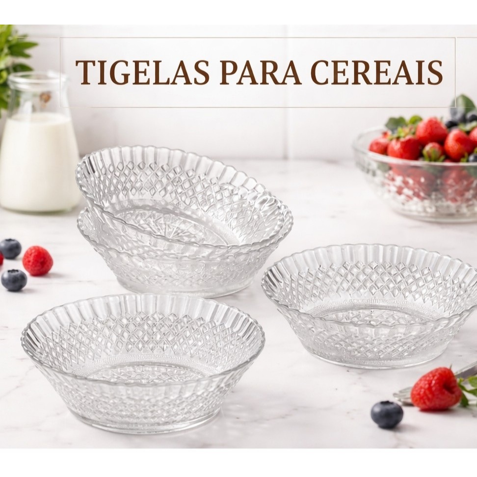 Comprar na ShopeeConjunto 2 Tigelas Vidro Barroco 570ml Para Cereais Multiuso Transparente