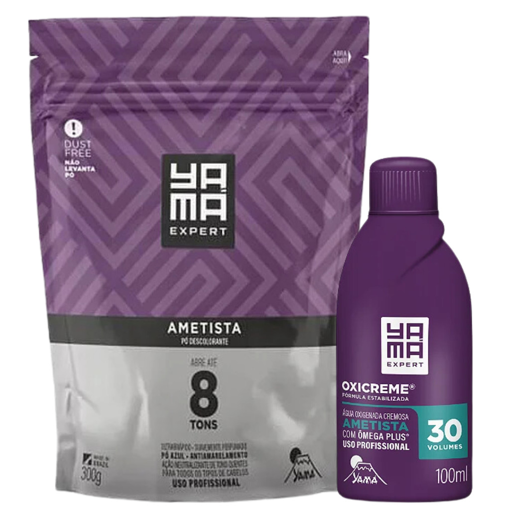 Comprar na ShopeeKit Pó Descolorante Ametista + Oxigenada 30 Volumes 100ml Profissional 8 Tons Yama 300g