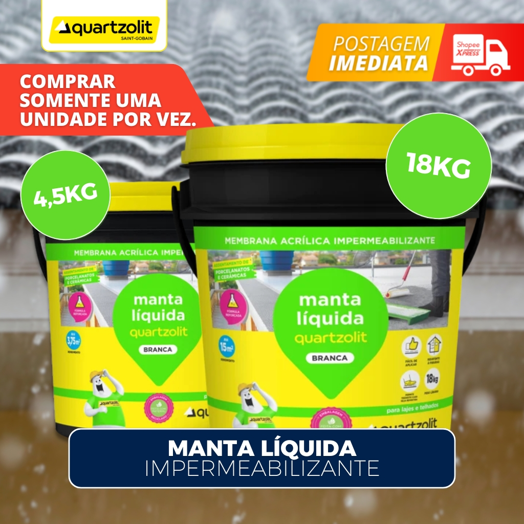 Comprar na ShopeeBorracha manta Liquida Quartzolit 18kg Impermeabiliza E Protege Branca Galão
