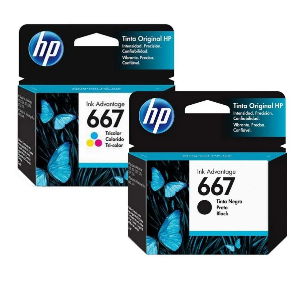Comprar na ShopeeKit com 2 Cartuchos Hp 667 1 preto e 1 Color Original / HP Deskejet Ink Advantage: 1275 / 2374 / 2375 / 2376 / 2775 e 2776. HP Deskejet Ink Advantage Plus: 6475 e 6476