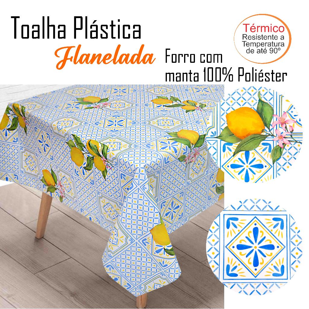Toalha de Mesa Plástica 1,40mX1,40m Térmica Flanelada Estampas em PVC Impermeável