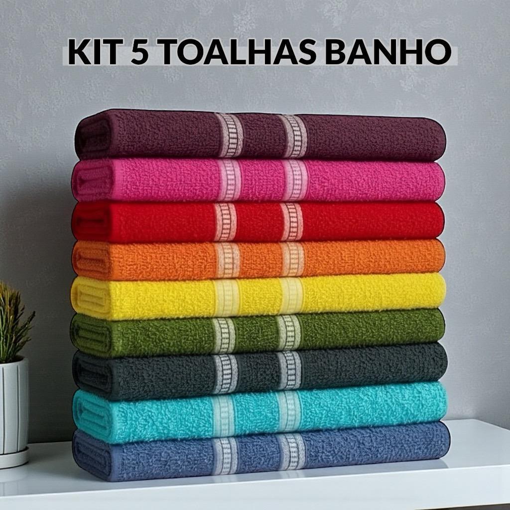 Comprar na ShopeeKit 5 Toalhas de Banho Madri Grande Macia 120x60 100% Algodão Sortidas