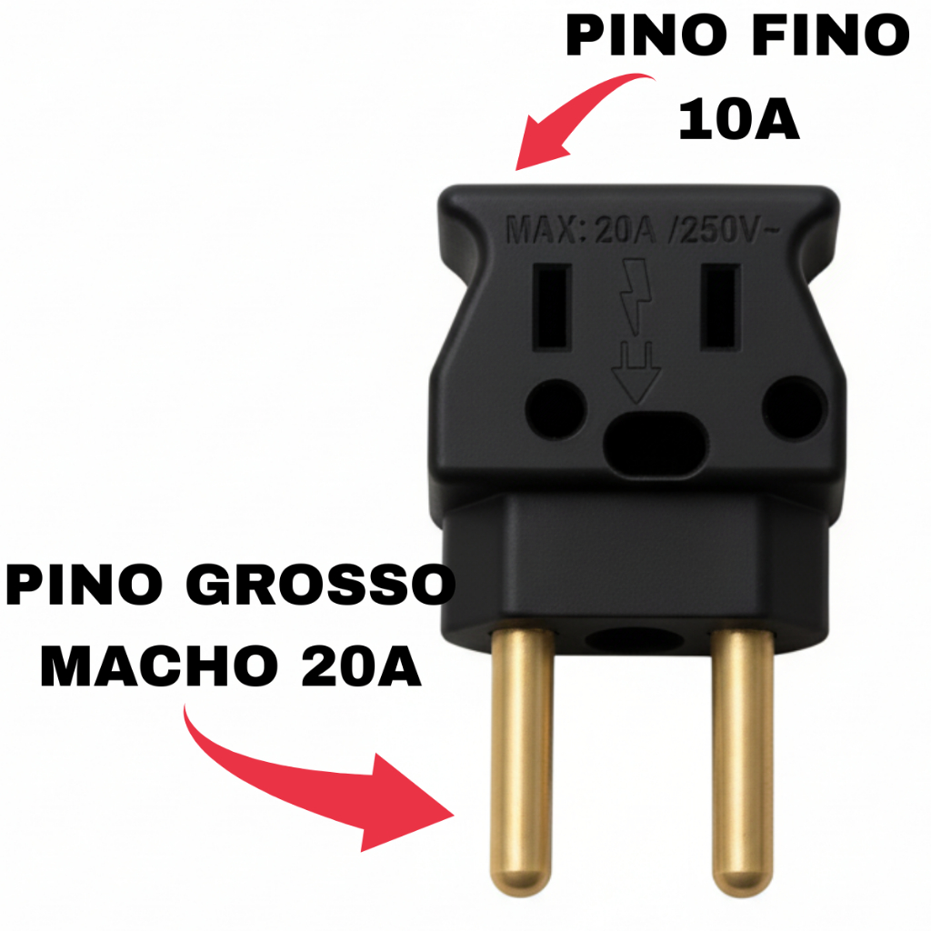 Comprar na ShopeeAdaptador Elétrico Pino Grosso Macho 20A para Fêmea 10/20A – Reforçado 250V Dif