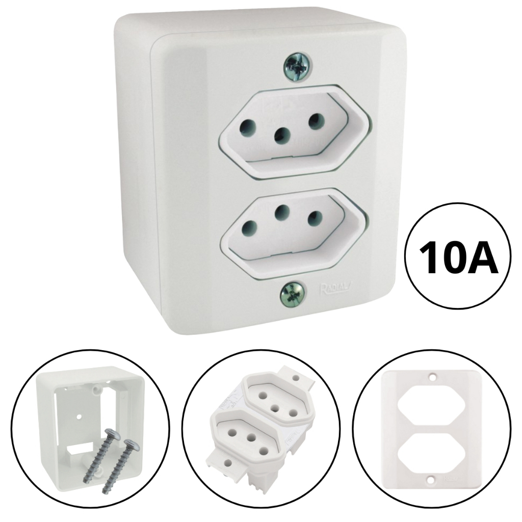 Comprar na ShopeeTomada Dupla 3 Pólos (2P+T) 10a Sistema X Branco Radial