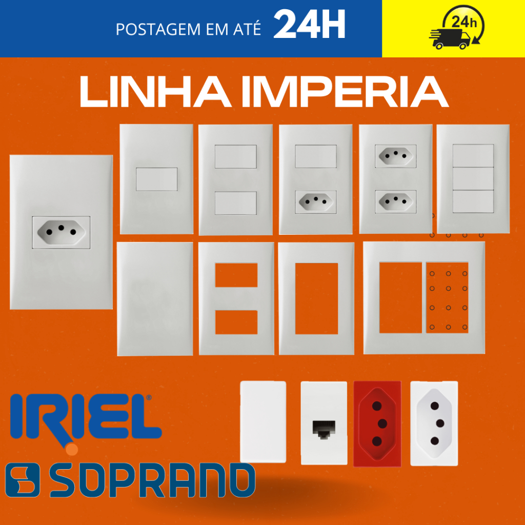 Comprar na ShopeeTomadas10A 20A Teclas Placas Iriel Soprano Imperia Furo Interruptores Simples Paralelo Intermediario