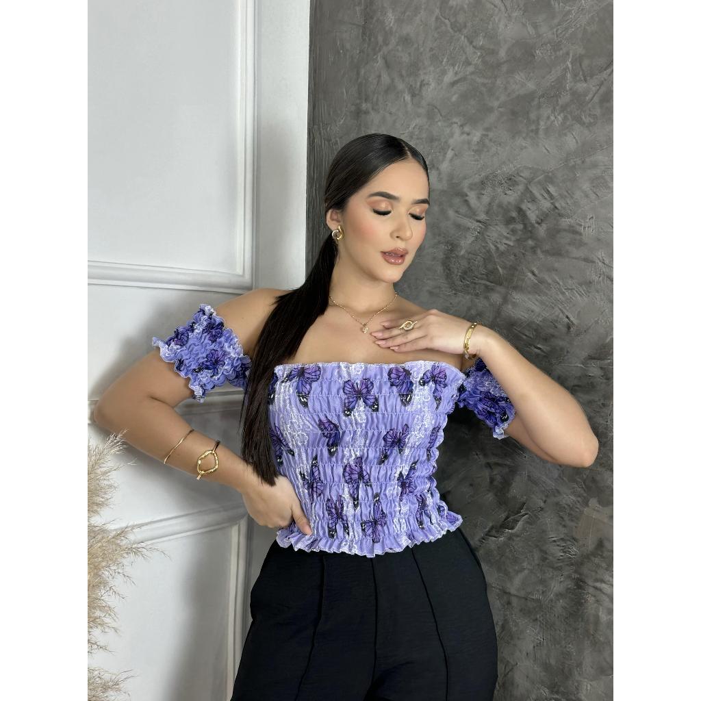Comprar na ShopeeCroppeds Ciganinha Blusinha Feminina Lastex Manga Curta Ombro a Ombro