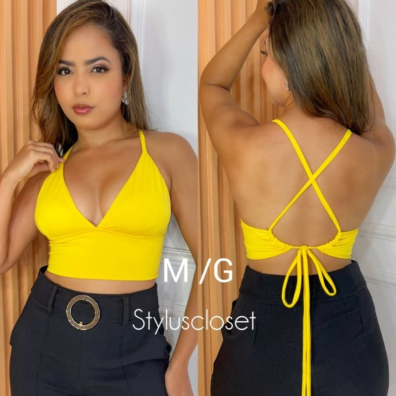 Comprar na ShopeeCropped Linho Alça Grossa Casual Frente Cruzado com bojo e zíper nas costas Elegante