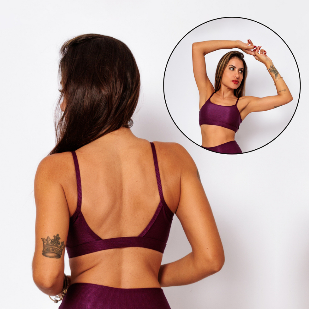 Comprar na ShopeeTop Cropped Feminino Fitness em Microfibra com Alças Reguláveis e Amarração nas Costas