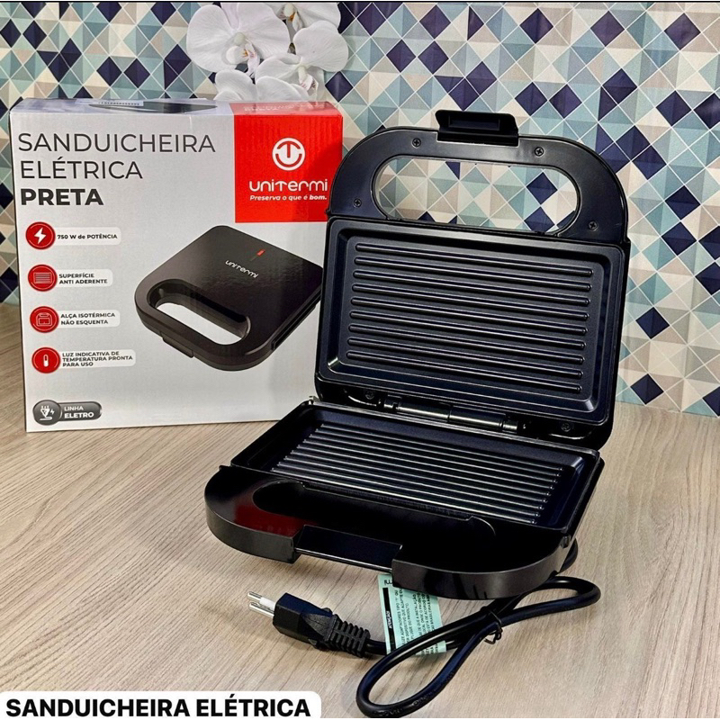 Comprar na ShopeeSanduicheira Elétrica Bak 750w Antiaderente Preta Preto 220v Preto 220v
