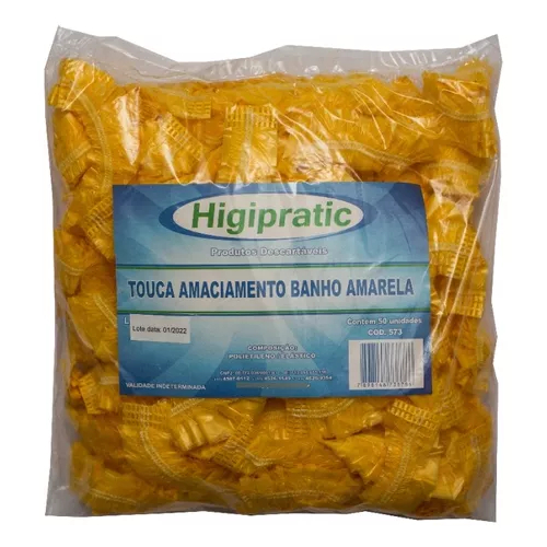 Comprar na Shopee50UN Touca Plástica para Banho Descartável Amarela Higipratic