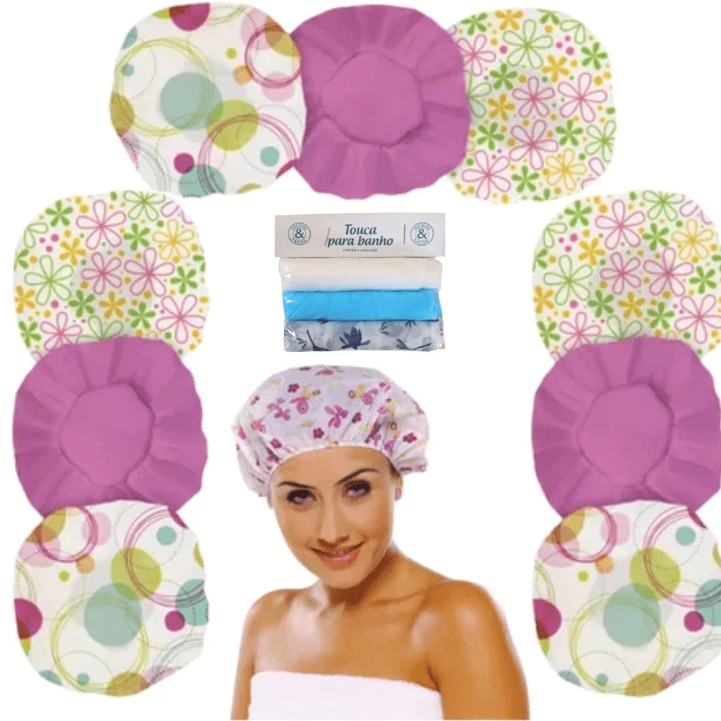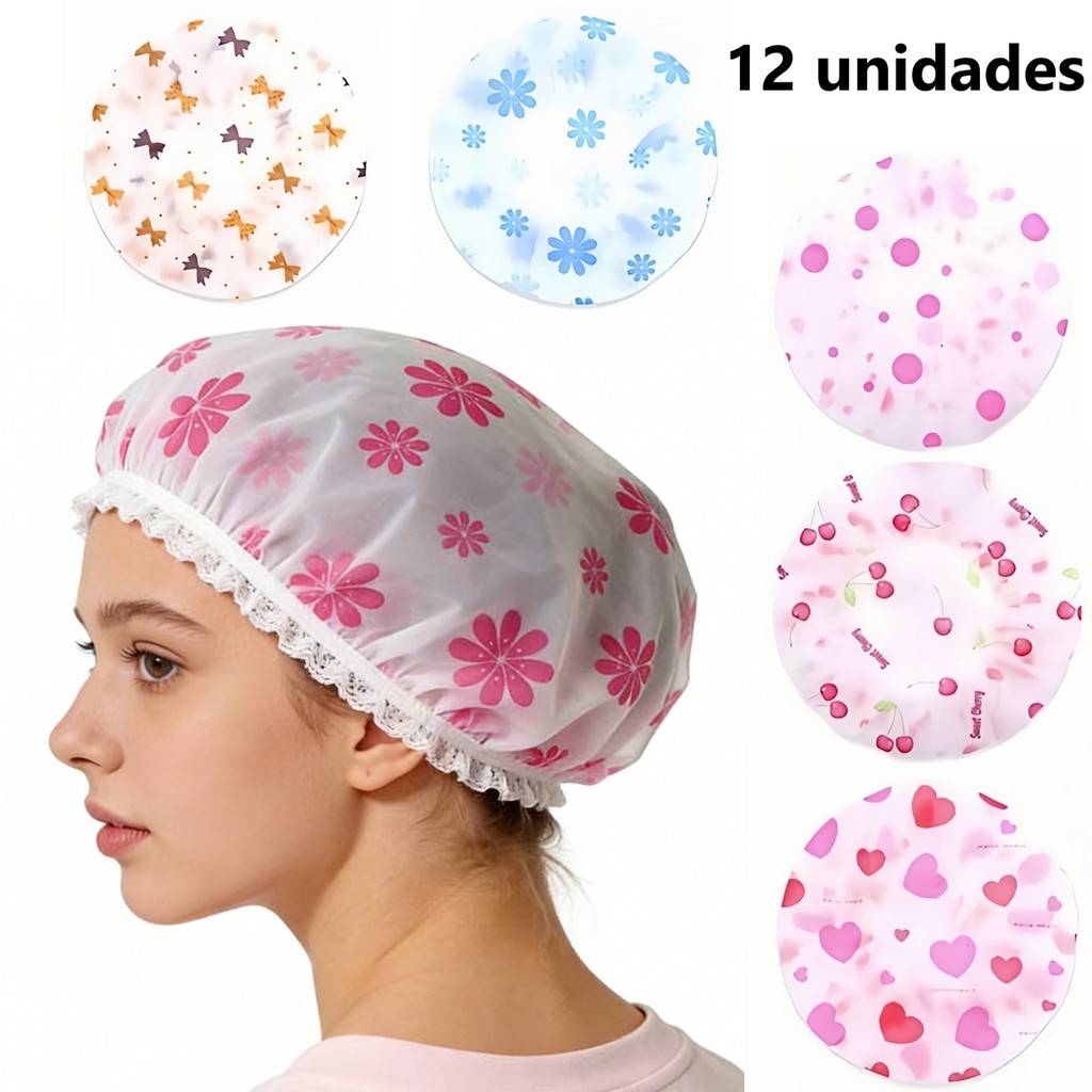 Comprar na ShopeeKit 2/4/6/8/10/12 Touca de Banho Impermeável Estampadas Alta Qualidade Estampas Lindas Variadas