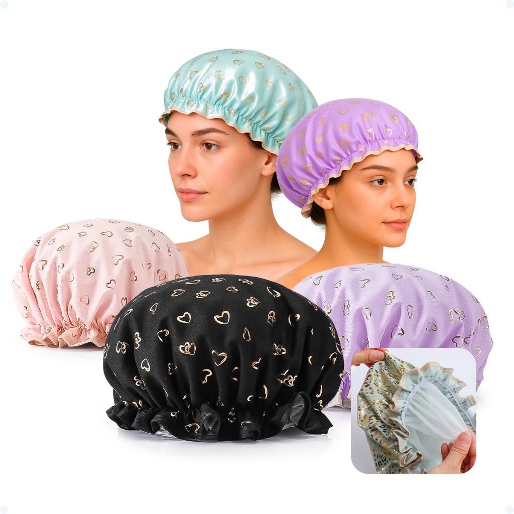 Comprar na ShopeeDouble Camada Chuveiro, Boné Estampado, Touca de Banho Impermeável e Reutilizável para Mulheres, Salão de Beleza e Spa