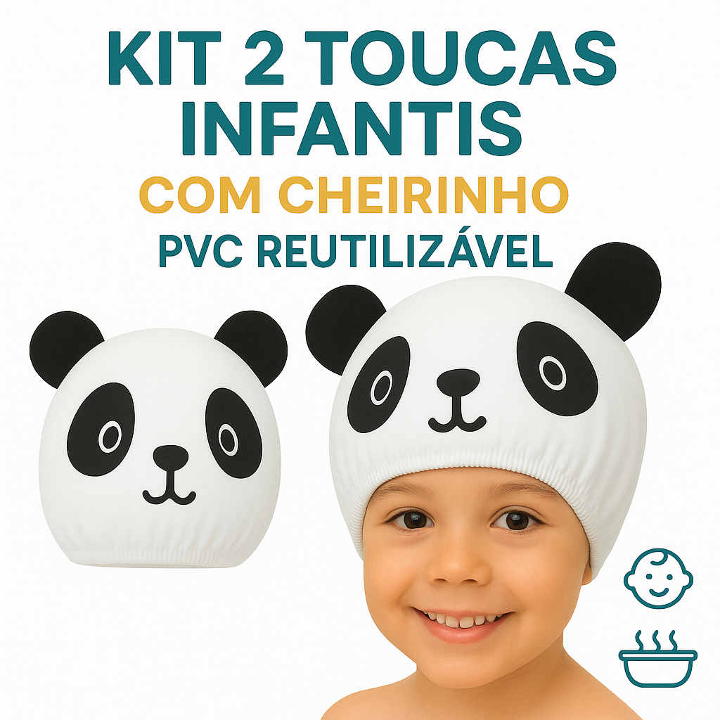 Comprar na ShopeeKit 2 Toucas de Banho Infantil com Cheirinho | PVC Reutilizável Panda