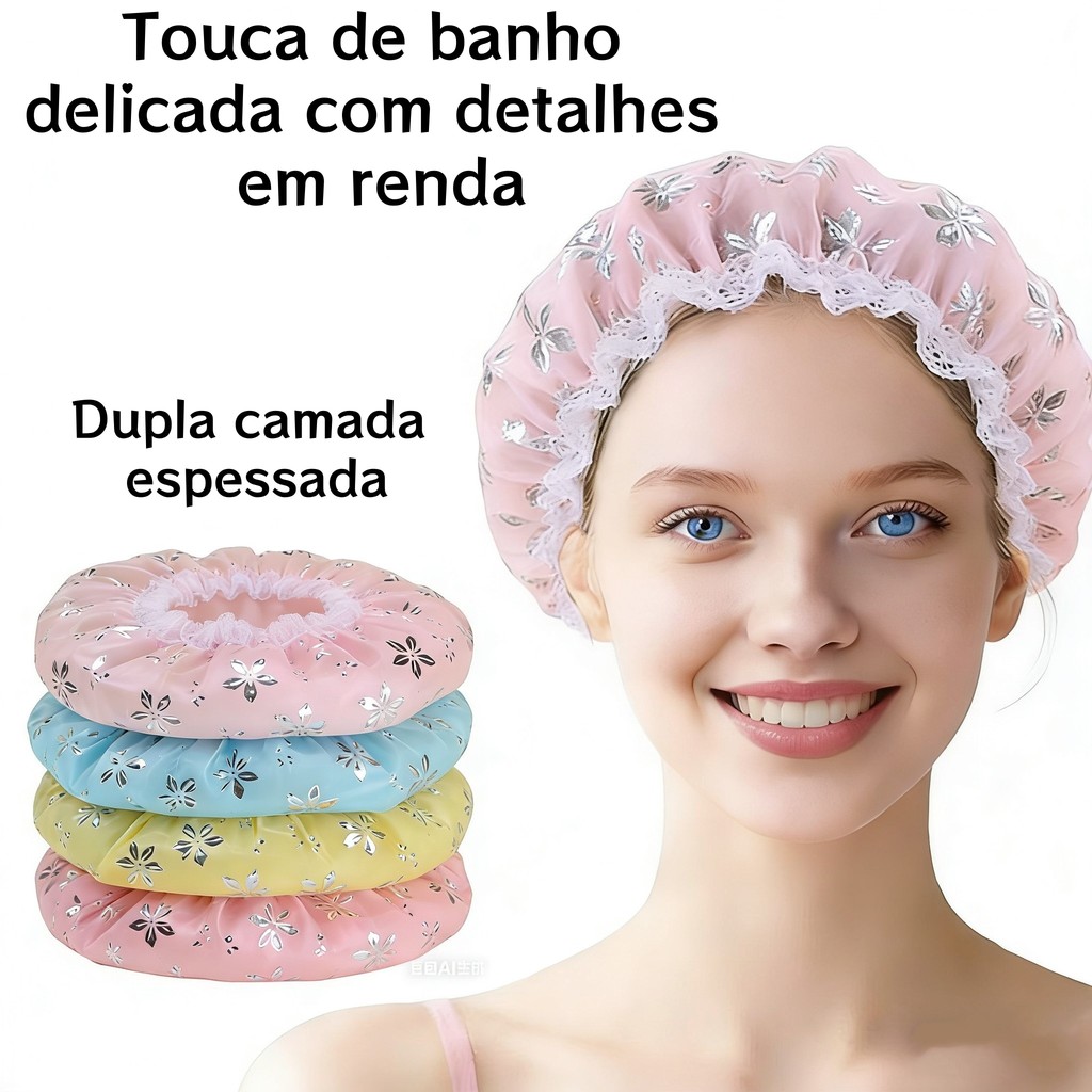 Kit 1/2/3 Touca de Banho com Detalhe em Renda Doce | Touca Estampada, Espessa, Impermeável e Resistente a Óleo