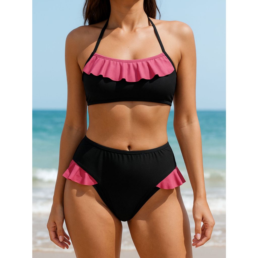 Comprar na ShopeeBiquíni Juvenil Feminino 10-16 Anos Listrado com Babado Tomara que Caia Amarração Cintura Alta Verão