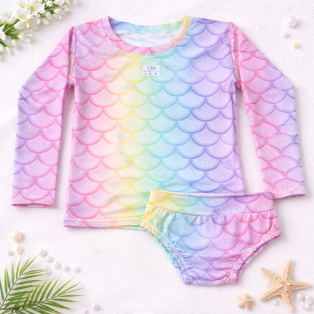 Comprar na ShopeeBiquini Infantil Menina Conjunto Blusa Manga Longa com Calcinha Proteção UV / Moda Praia Infantil