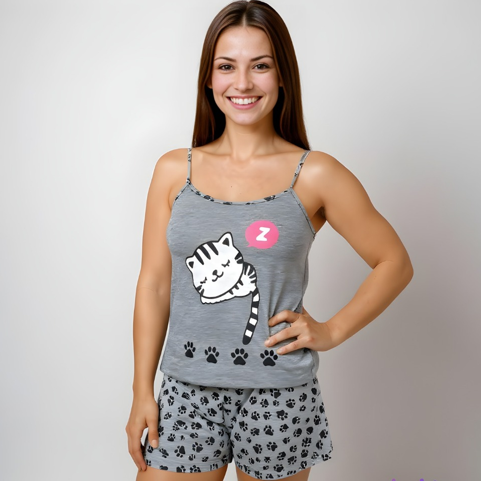 Comprar na ShopeeCamisola Regata Feminina com Estampa de Bolinha – Conforto e Estilo para Dormir e Relaxar
