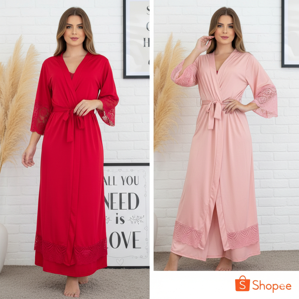 Comprar na ShopeeRobe Longo Feminino Com Renda Luxo| Tecido Leve e Macio | Peças Vendidas separadamente