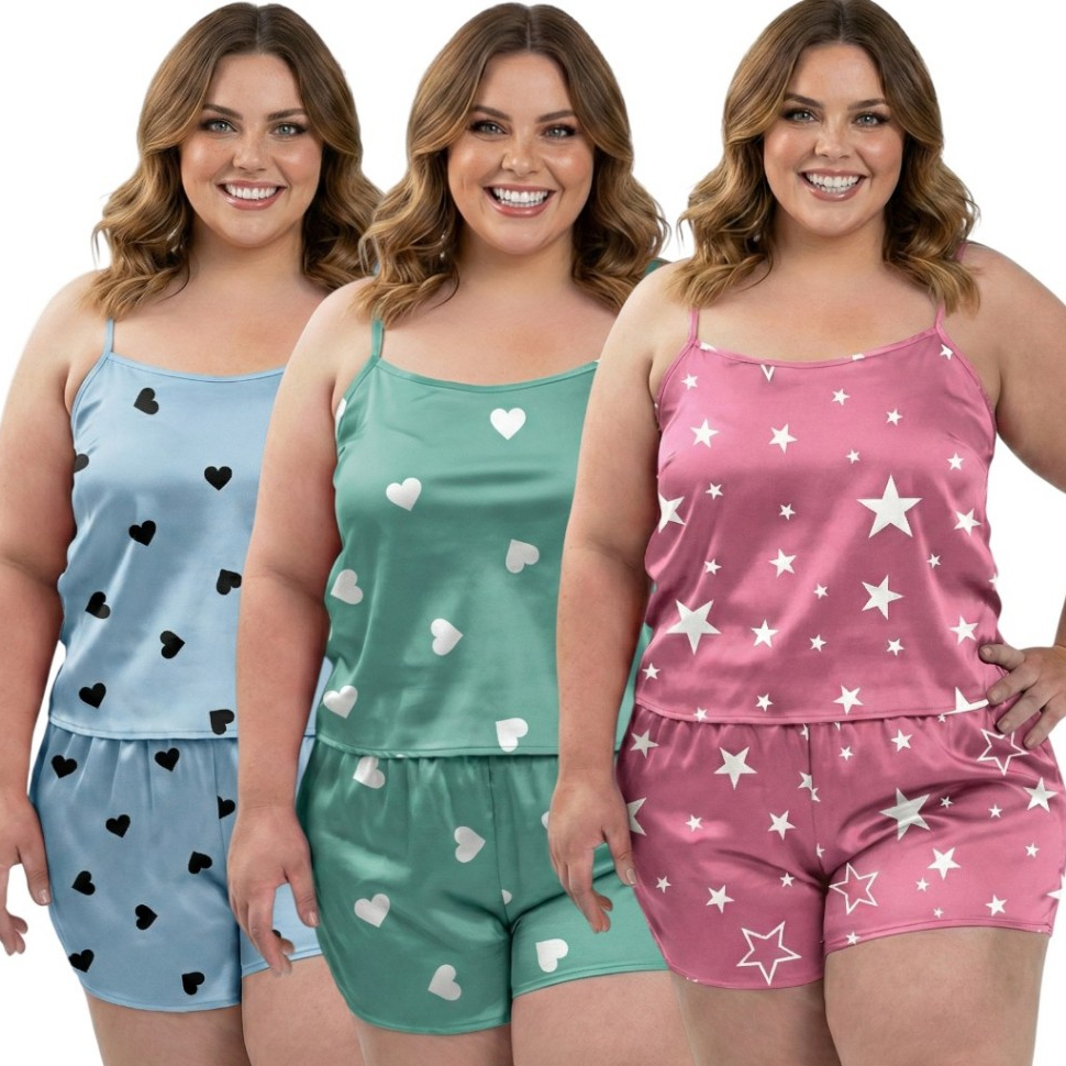 Comprar na ShopeeKit 3 Conjuntos Plus Size Baby Doll Short Doll Estampado Sem Bojo Premium