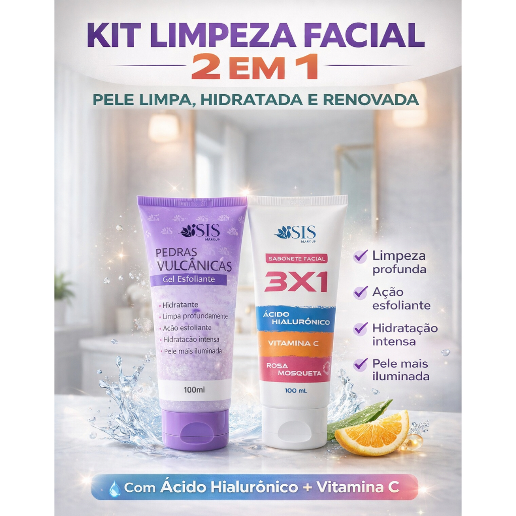 Comprar na Shopeekit com 2 itens Skincare Limpeza Facial + Hidratação com Ácido Hialurônico e Vitamina C