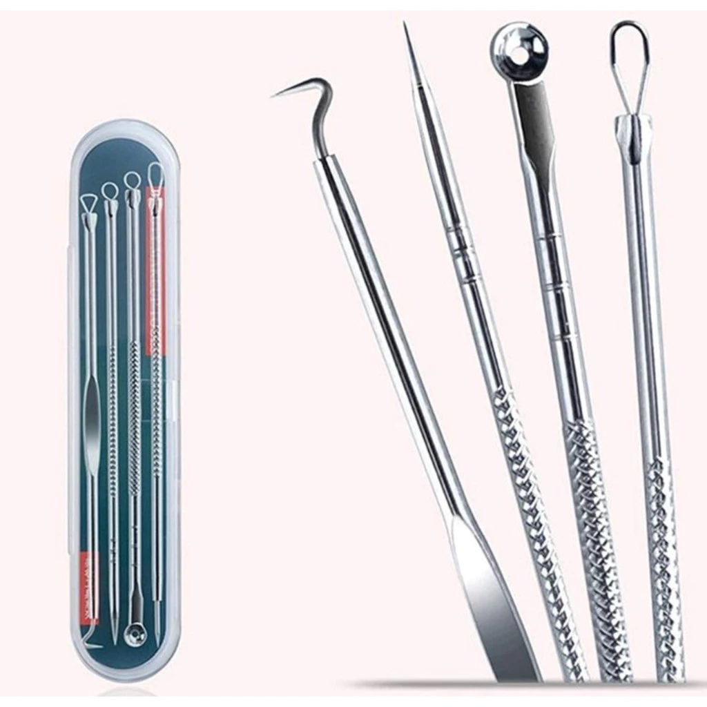 Kit 4 de Ferramentas de Beleza Extrator de Acne Removedor de Cravo Espinha Aço Inoxidável Agulhas