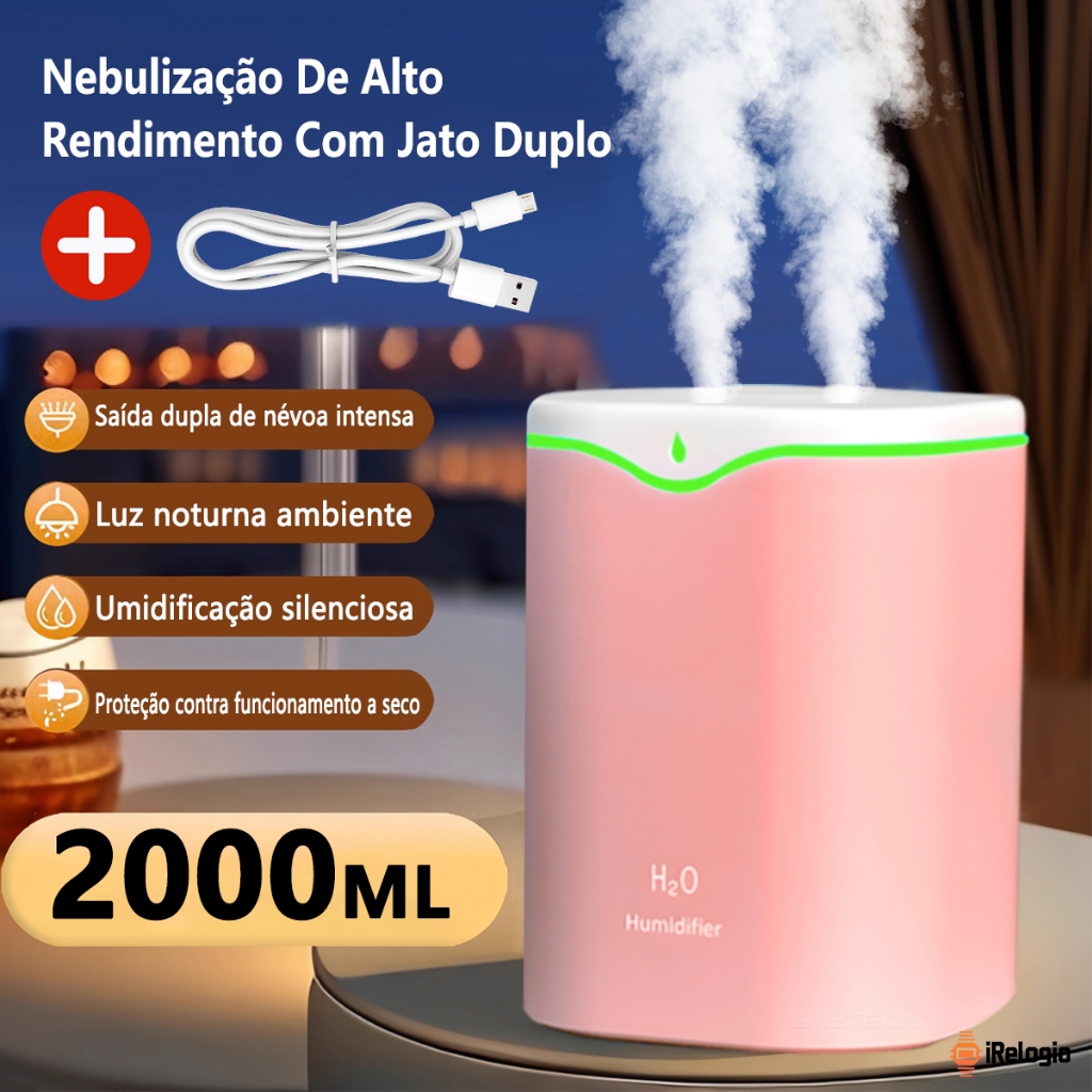 Comprar na ShopeeUmidificador de Ar USB Ultrassônico Grande com Bico Duplo e LED Ambiente
