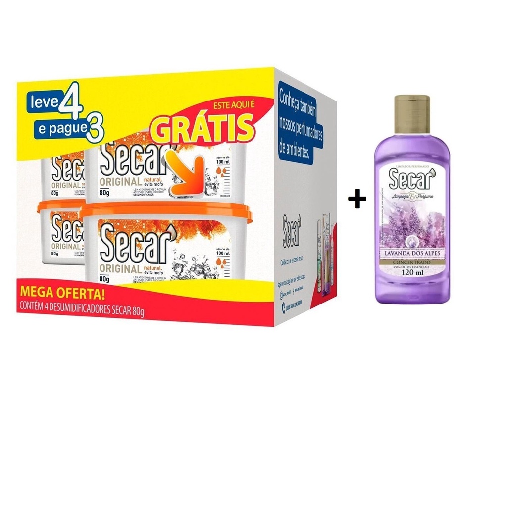 Kit anti mofo desumidificador Secar Leve 4 Pague 3 + Limpador Perfumado Lavanda Dos Alpes 120ml