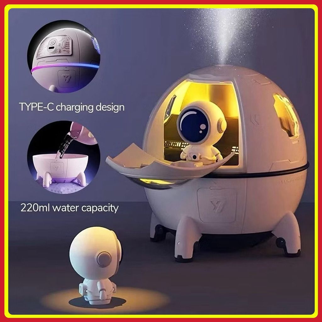Comprar na ShopeeUmidificador de Ar Astronauta 220ml Luz LED Colorida Pulverizador De Névoa USB