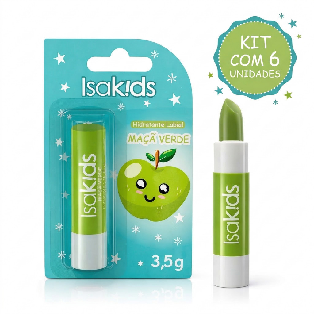 Comprar na ShopeeKit com 6 Hidratantes Labial Maçã Verde Isakids 3,5g Cor Suave e Hidratação