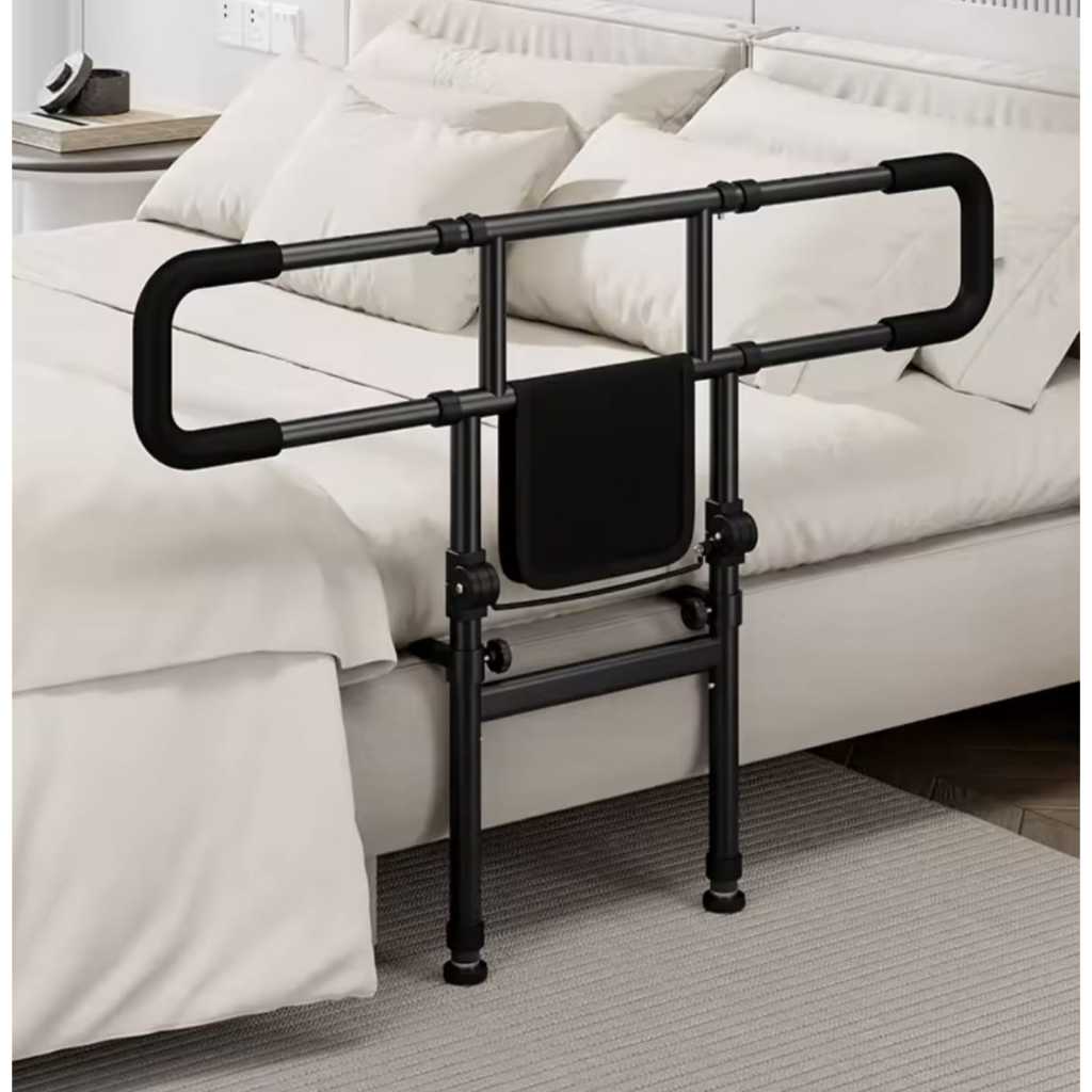 Grade de Proteção e Barra de Apoio Rebatível Dobrável Preta Para Cama Idoso Acamado
