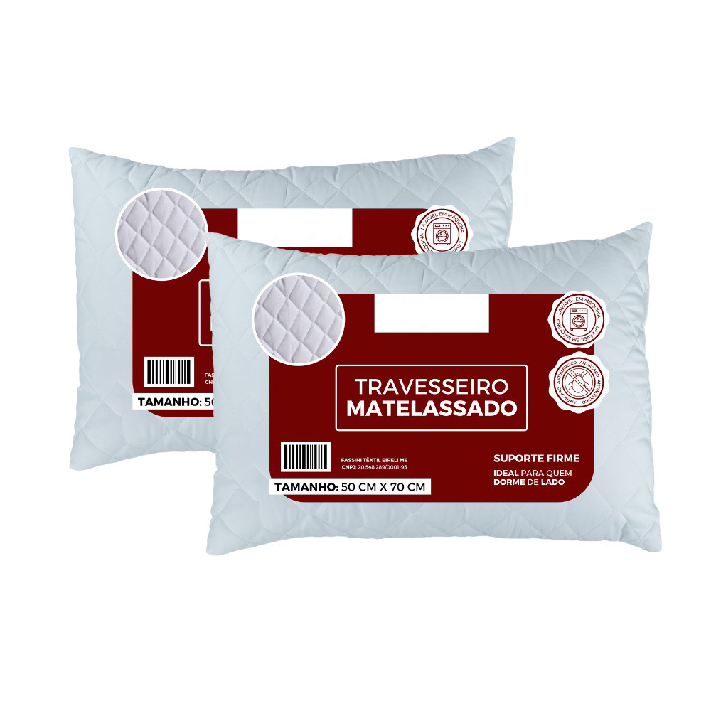 Kit 2 Travesseiros Matelassê 50x70 Fibra Siliconada Suporte Extra Firme