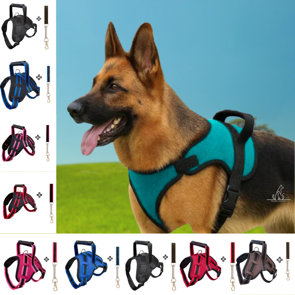Comprar na ShopeeColeira com Regulagem e Guia Peitoral Cachorro Grande Guia Doberman Pitbull Anti Puxão coleira cachorro