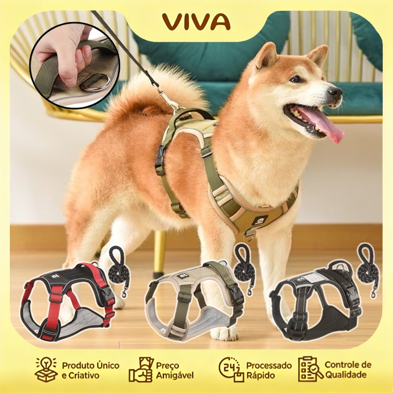 Comprar na ShopeeArnês Ajustável Para Cães De Estimação – Com Trela De Segurança , Colete Peitoral Reflexivo E Alça Reforçada
