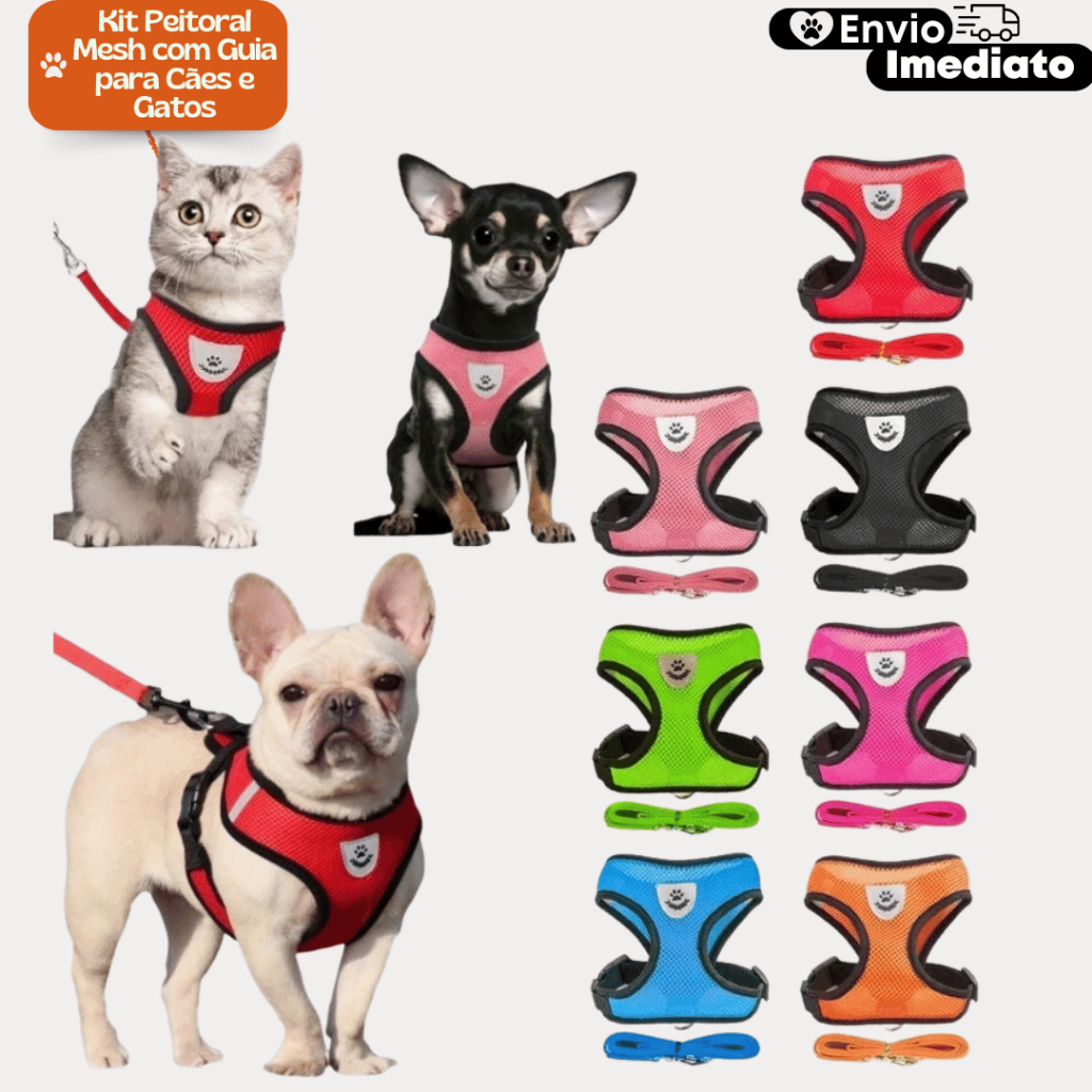 Comprar na ShopeeColeira Peitoral Cães E Gatos Ajustável Com Guia Colete Pet - Diversas Cores e Tamanhos