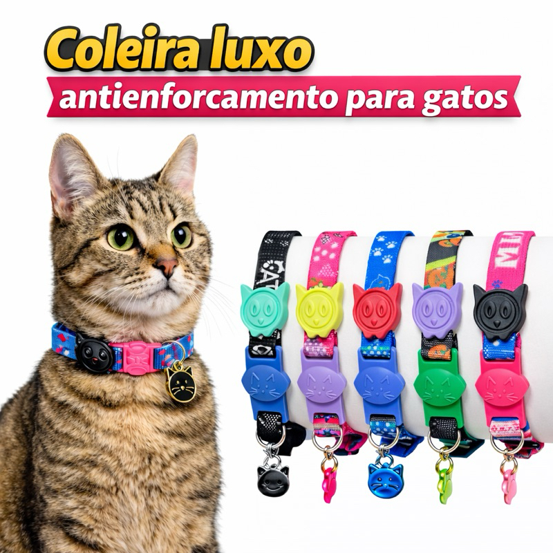 Comprar na ShopeeColeira para Gato Anti-Enforcamento Elastica Estampada Luxo c/ Pingente 🐱🐈