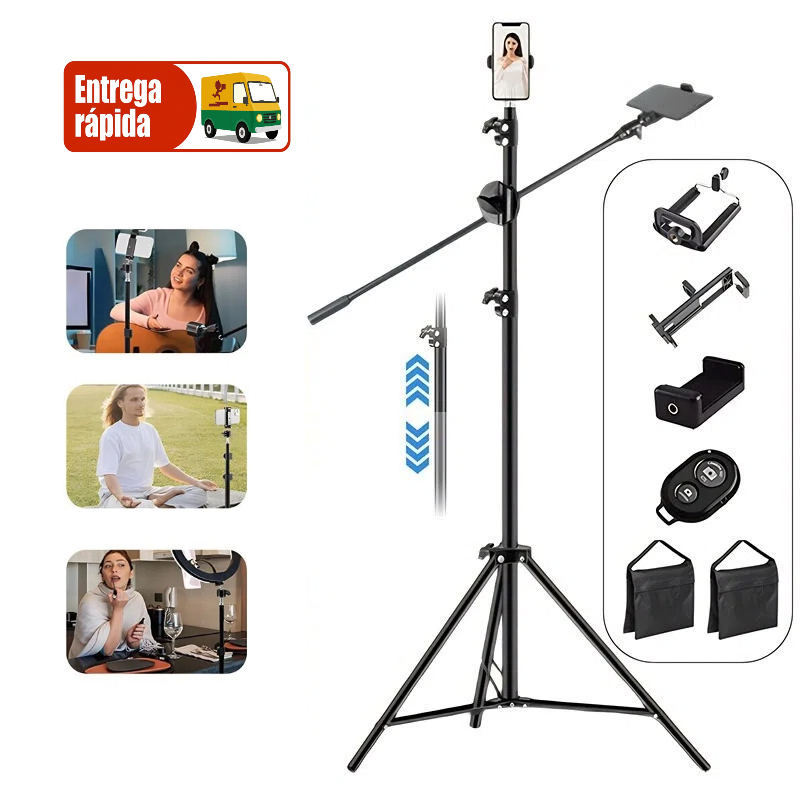 Comprar na ShopeeTripé Girafa para Vista de Cima c/ Estabilização, 2 Pesos de Areia e 3 Suportes Celular/Tablet