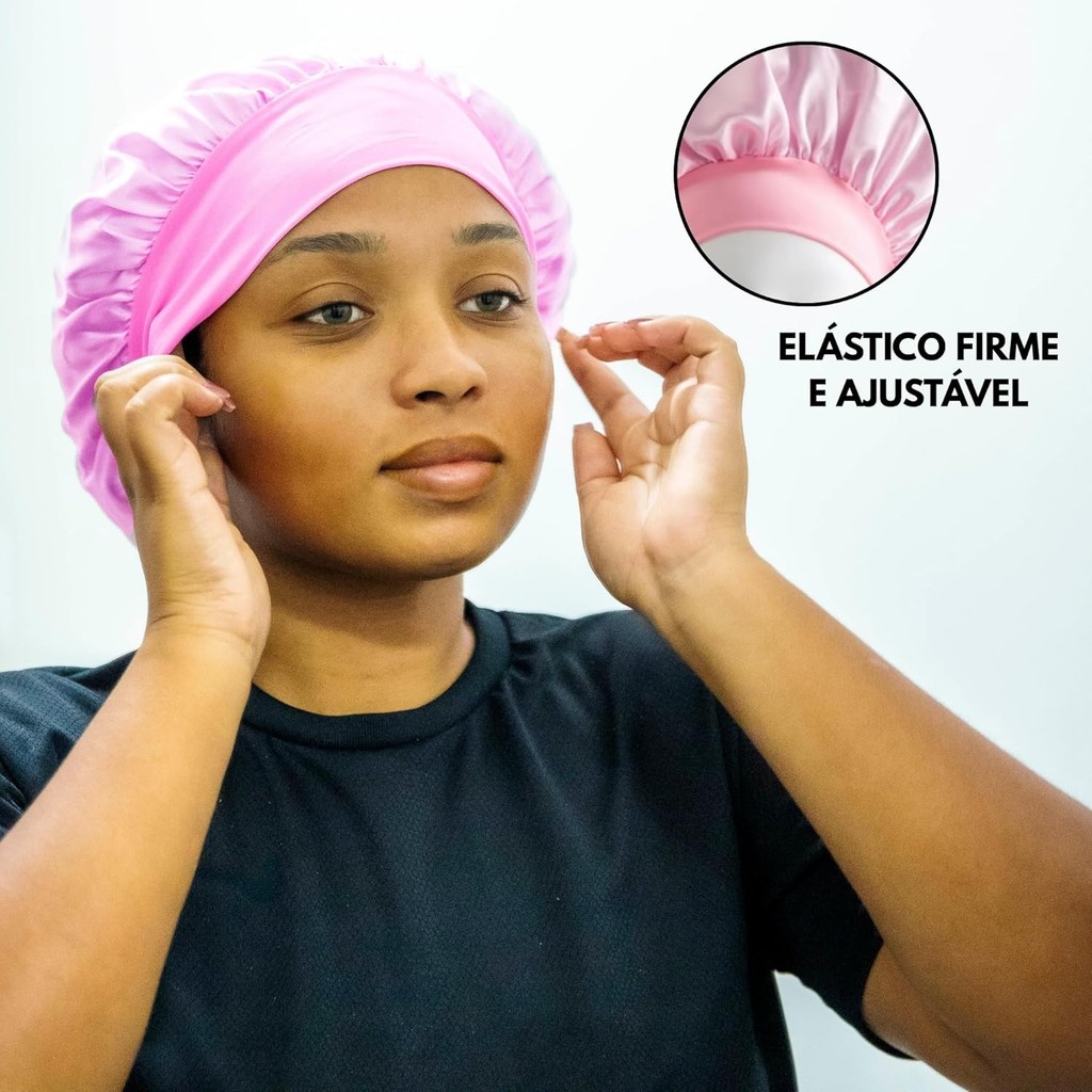 Comprar na ShopeeTouca de Cetim Antifrizz com Elástico Ajustável – Protege os Fios Durante o Sono, Conforto e Hidratação Capilar