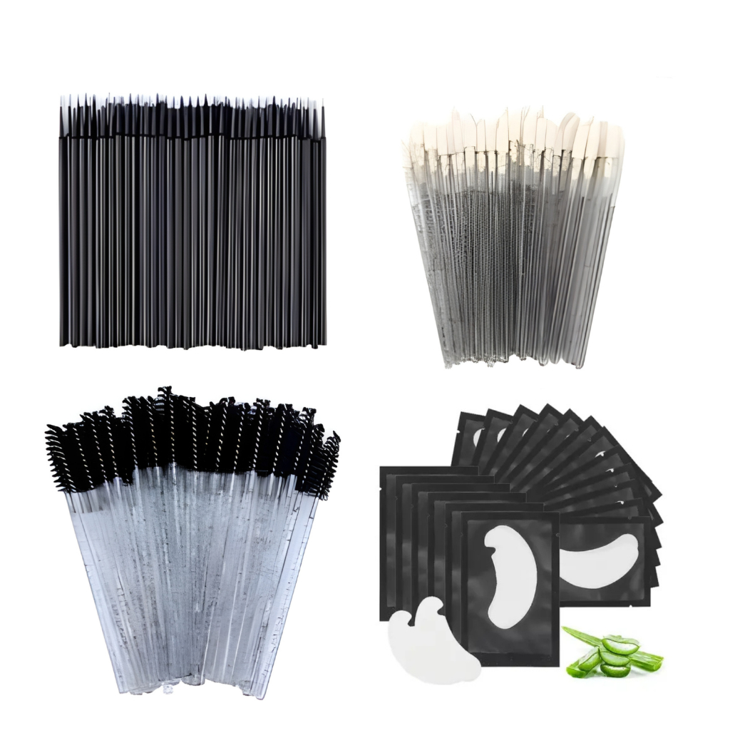 Comprar na ShopeeKit Profissional Cílios 100 Microbrush Preto + 50 Escovinhas + 50 Gloss + 10 Pads Gel black