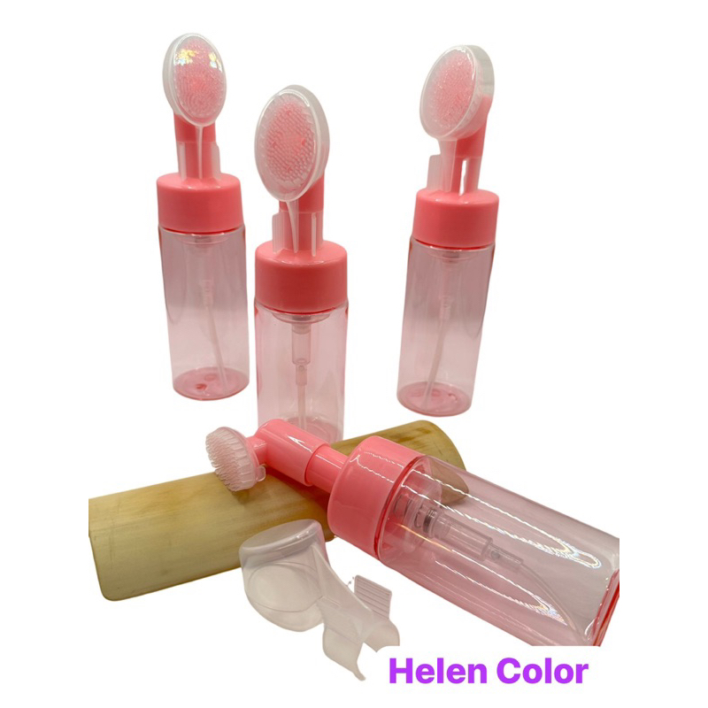 Frasco Pump Espumador Com Escova De Silicone Oval Helen Color Para Limpeza Facial Skin Care Rosa Transparente