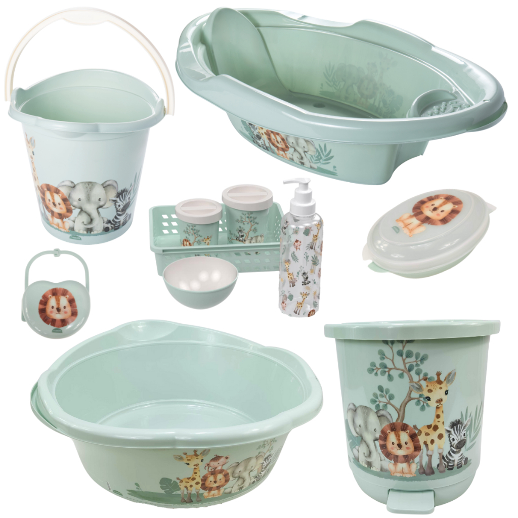 Comprar na ShopeeKIT BANHEIRA DE BEBÊ DECORADA LUDICA PLASUTIL + KIT HIGIENE URSO 5 PEÇAS + BACIA LIXEIRA BALDE SABONETEIRA PORTA CHUPETA