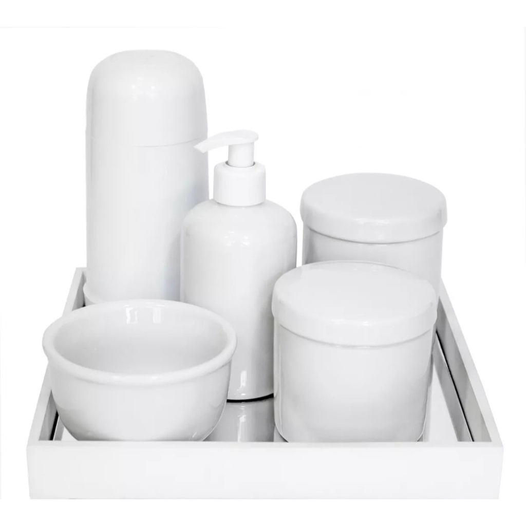 Comprar na ShopeeKit Higiene Bebê Porcelana Potes Saboneteira Molhadeira Garrafa Térmica E Bandeja Espelhada Branca