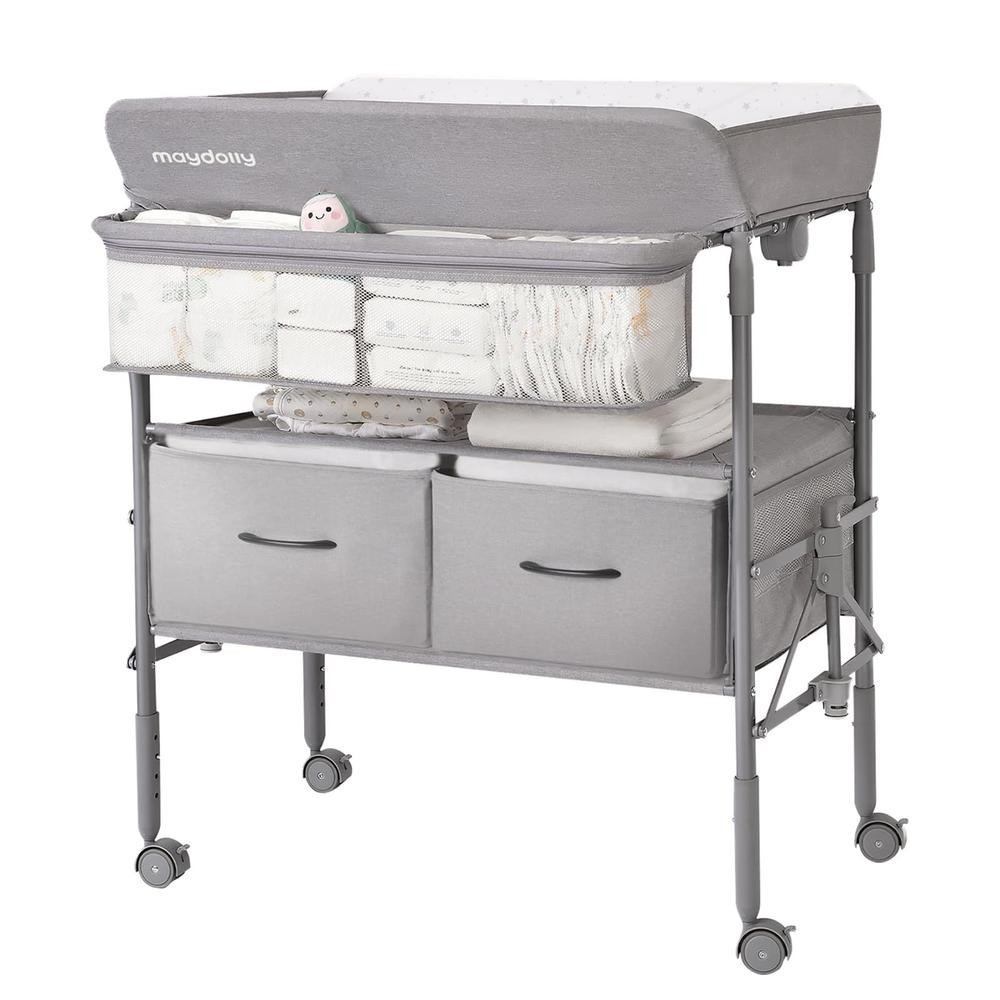 Comprar na ShopeeTrocador de Bebê Portátil Maydolly - Dobrável com Gavetas - Cinza