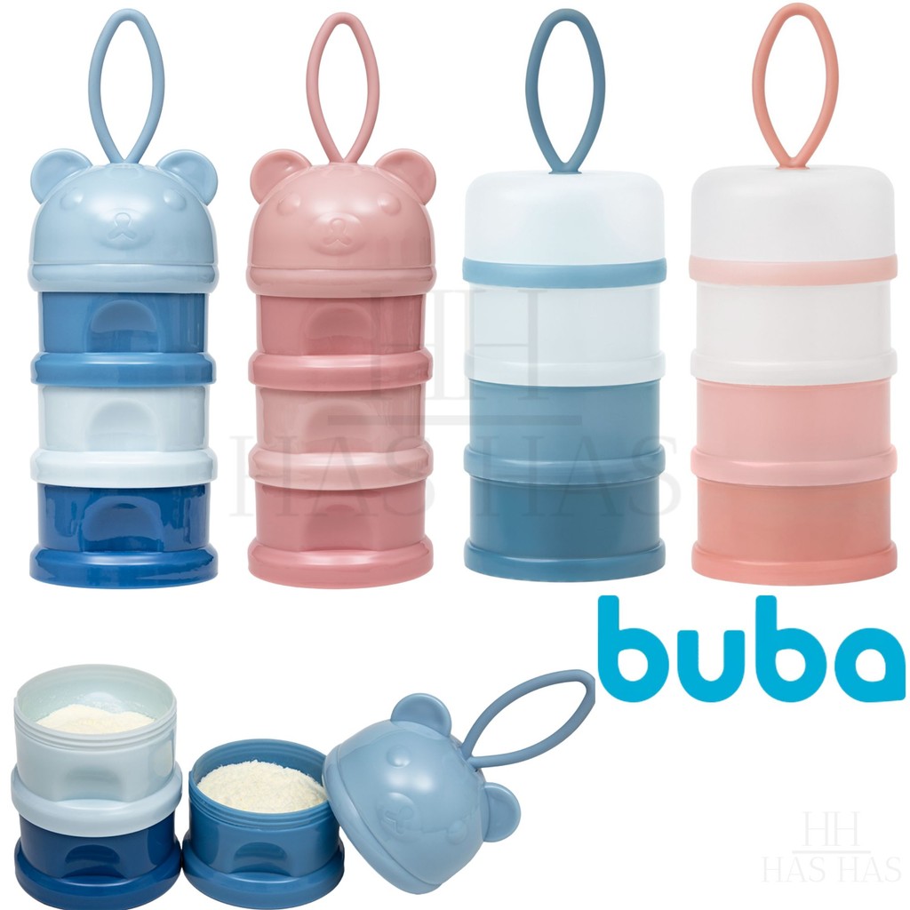 Pote Empilhavel Dosador Porta Leite em Pó Potinhos Ursinho Lanche Com Rosca Lancheira Azul Rosa Buba