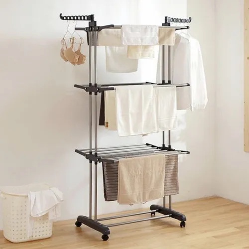 Comprar na ShopeeVaral de Chão de Roupa Dobrável 3 andares com rodinhas